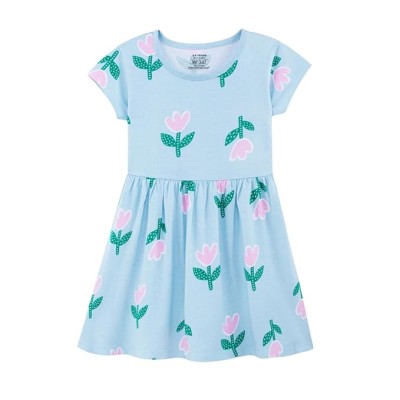 女童印花圆领版型喇叭连衣裙 |棉质及膝半袖女孩夏季连衣裙休闲装