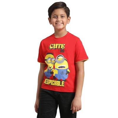 男孩短袖红色图案印花常规版型 T 恤,适合儿童男孩